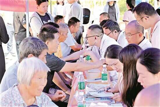 义诊活动现场,前来寻医问诊的村民络绎不绝。“有什么不舒服吗?”主任医师曹远景遇到一位年逾七旬的老人想找医生“把把脉”,当场为老人把脉,并给他吃了一颗“定心丸”:“没有什么大问题。”