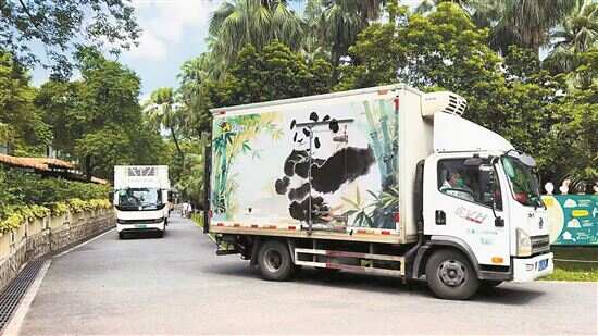 吃的方面,广州动物园通过采购确定了本地稳定供应商,每三天配送一次,能保障食物新鲜度,竹(笋)来源稳定、数量充足。大熊猫馆配备有齐全的精饲料制作设备,每日按熊猫基地配方制作窝头。原料由固定供应商供应并单独储存,厨房内配备有杀菌除湿设备。