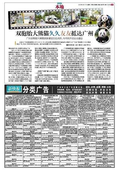 记者从广州动物园获悉,9月16日11:40,来自成都大熊猫繁育研究基地的大熊猫“久久”“友友”乘南航CZ3414航班抵达广州,开启5年的科普交流活动。园方尚未透露它们的正式亮相时间。