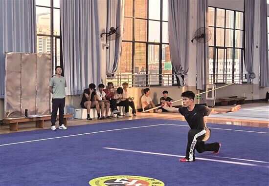 一位老师的点拨让他豁然开朗:“武术能否像音乐一样拥有律动?”此后,王曦开始从心理学和艺术表现的角度重新审视自己的套路编排,注重动作的起伏节奏与观众的心理预期相契合。“就像音乐有前奏、高潮和尾声,武术也要有张弛有度的节奏感,才能让人看得入神。”正是这种将思考融入训练的态度,使他最终突破了单纯技术训练的局限,走向了更广阔的武术天地。