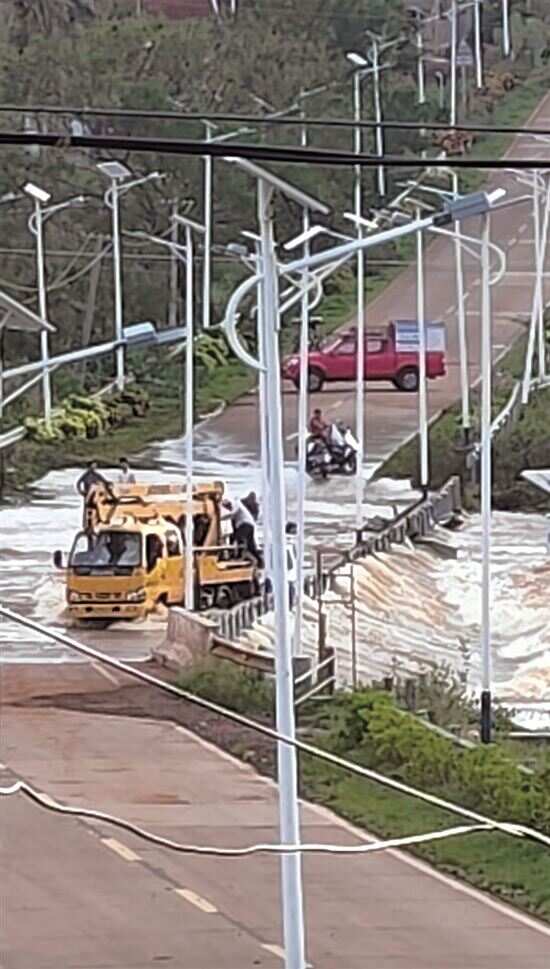 新快报讯 记者王彤 通讯员沈甸报道 强台风“麦德姆”肆虐,暴雨如注。10月7日清晨6时许,湛江徐闻县海安镇东渡村附近,因道路被湍急洪水淹没,城内新村村民黄先生骑摩托车途经此处时,不慎陷入泄洪急流,仅能紧紧抓住栏杆勉强支撑,生命岌岌可危。正在附近开展台风后抢修复电工作的广东电网湛江徐闻供电局海安供电所所长冯方长和副所长刘王亚发现了他,助他及时化险为夷。