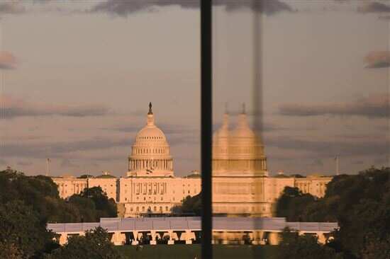 ■这是10月8日在美国华盛顿拍摄的日落时分的国会大厦。新华社发