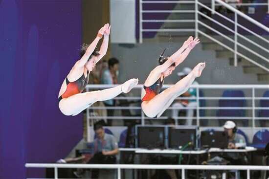 在率先进行的女双3米板比赛中,陈艺文/林珊以超过第二名14.22分的优势摘得金牌。这也是继女子团体项目夺冠后,陈艺文和林珊在本届全运会赢得的第二个冠军。
