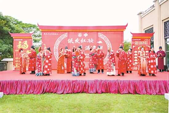 活动现场,16对金婚、银婚夫妇身着典雅汉服,分两批缓缓登场,依次完成却扇礼、敬茶礼等传统婚仪环节,在亲友的见证下重温岁月深情。主办方为夫妇们颁发金婚银婚纪念证书,每一份证书都承载着对他们长久以来相濡以沫的敬意。来自连南的房女士动容地说:“父母1987年领证后仅简单聚餐,这次活动仪式感满满,为他们增加了美好的记忆,这份温暖太珍贵了!”
