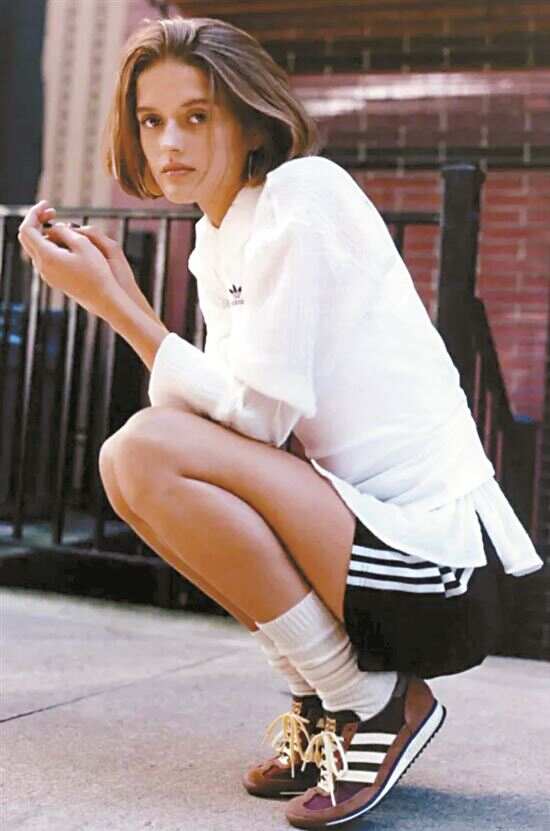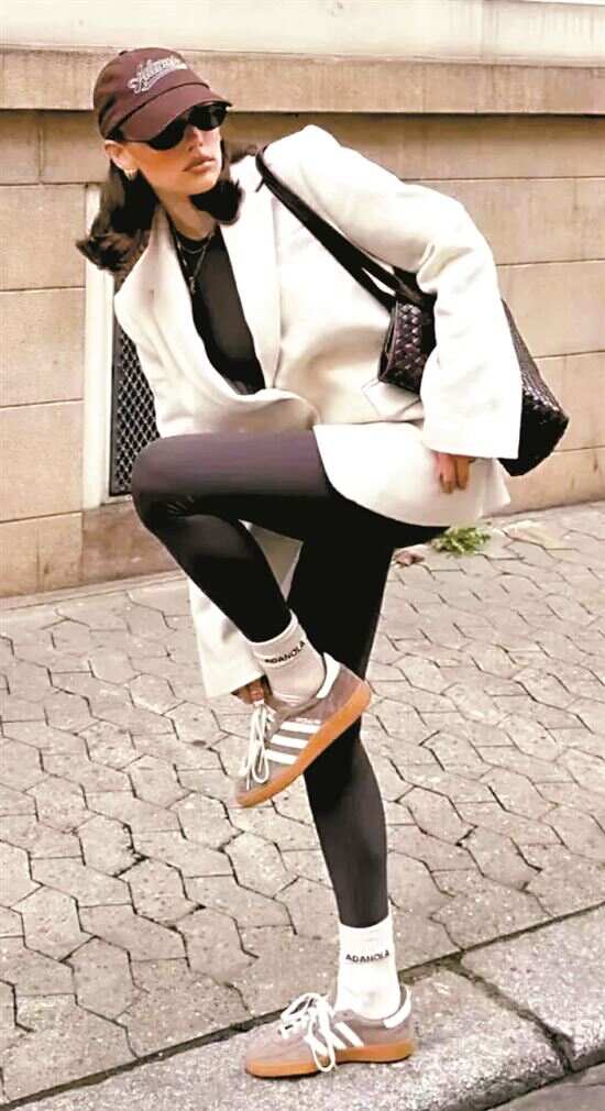 ▲一双薄底运动鞋搭复古短裙或运动裤,秒穿出减龄俏皮时髦感。