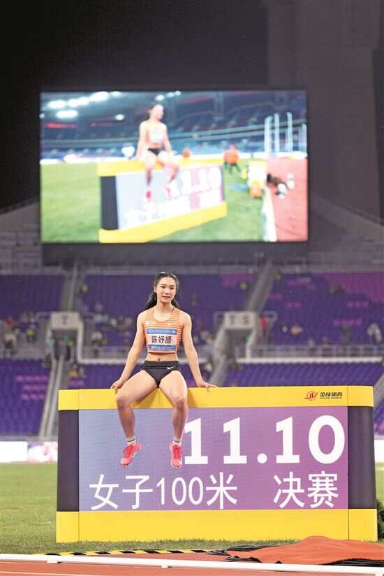 新快报讯 记者毛毛雨报道 11月17日晚,广东省奥体中心上演全运会田径项目中最受瞩目的男子、女子百米“飞人大战”。在率先进行的女子100米决赛中,来自浙江的16岁小将陈妤颉以11秒10的成绩强势夺冠,成为全运会历史上最年轻的女子百米冠军。