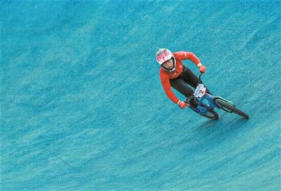 ■11月19日,十五运会竞速小轮车项目结束争夺。来自广东云浮的廖婉仪获得女子竞速赛冠军,夺得广东小轮车队的第一枚全运会金牌。新快报记者 观显锋/摄