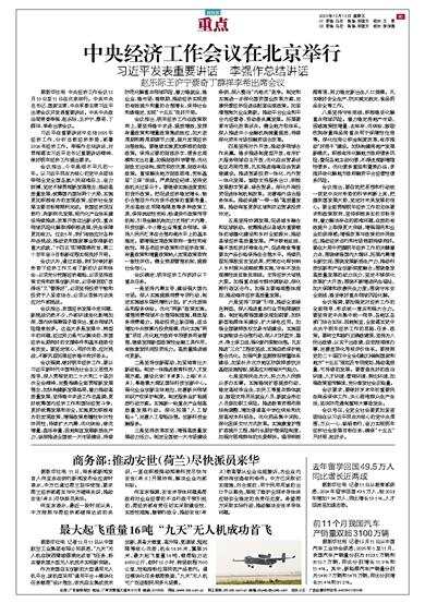 会议确定,明年经济工作抓好以下重点任务。