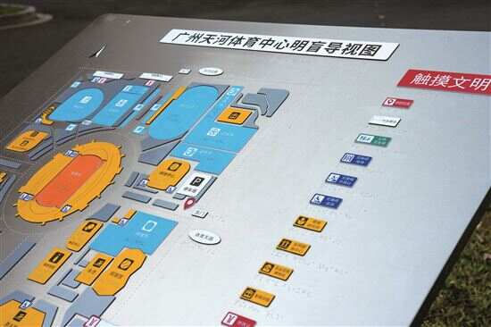 场馆入口处还设置了明盲导视图,采用凸起点字与触觉图形设计,可帮助运动员预先了解场地布局。同样的触觉导览设计还应用于每个洗手间门口、休息室门口、电梯间,将空间信息转化为可触摸的导航图示。