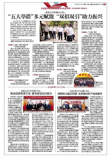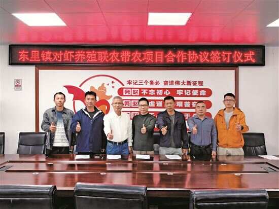 新快报讯 记者方轶报道 近日,湛江雷州市东里镇迎来对虾产业发展关键节点:广州市派驻东里镇帮镇扶村工作队(下称 “工作队”)联合广东药科大学农村科技特派员团队、雷州市越秀海晟源对虾养殖科技有限公司、雷州市吉凯种养殖专业合作社,共同举行“对虾养殖联农带农帮扶示范点”与“中草药无抗养殖技术示范点”签约及挂牌仪式。