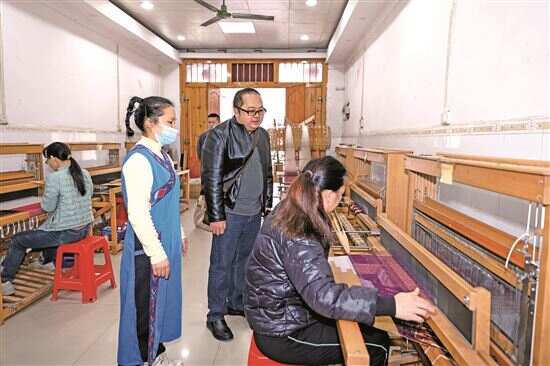 ■忻城壮锦绣娘制作织锦产品。