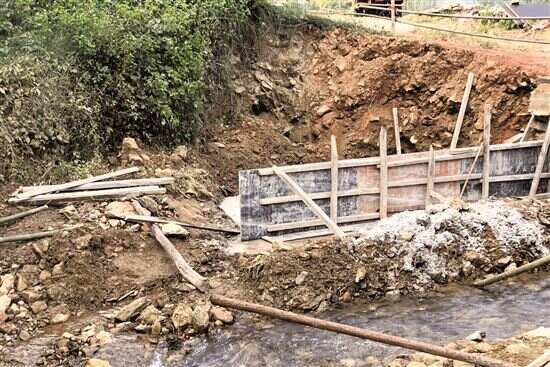 ■苗花村兵田桥施工中。