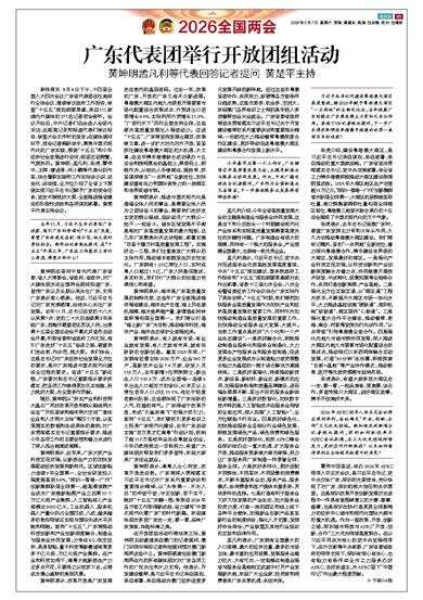 在一个半小时的互动交流中,现场记者聚焦广东改革发展的一系列热点话题频频发问,广东团代表直面关切、坦诚作答,结合本单位本部门本行业实际,分享心得体会,讲述履职故事,并介绍有关情况和下一步工作计划,从不同视角表达了广东紧跟总书记、奋进“十五五”的坚强决心与坚定信心。