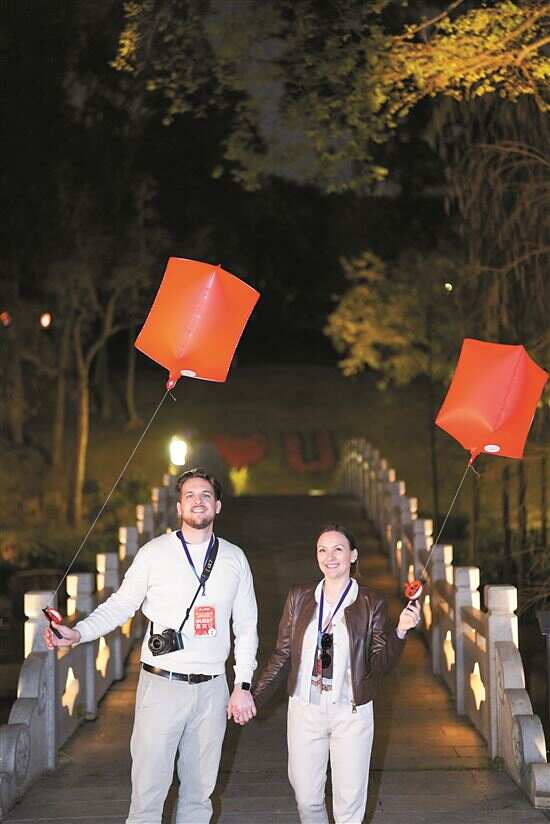3月5日晚,国际友人们手持孔明灯式升气球,穿梭在云萝植物园的璀璨花灯里,梦幻的广府灯会给他们行程的最后一站画上了圆满的句号。