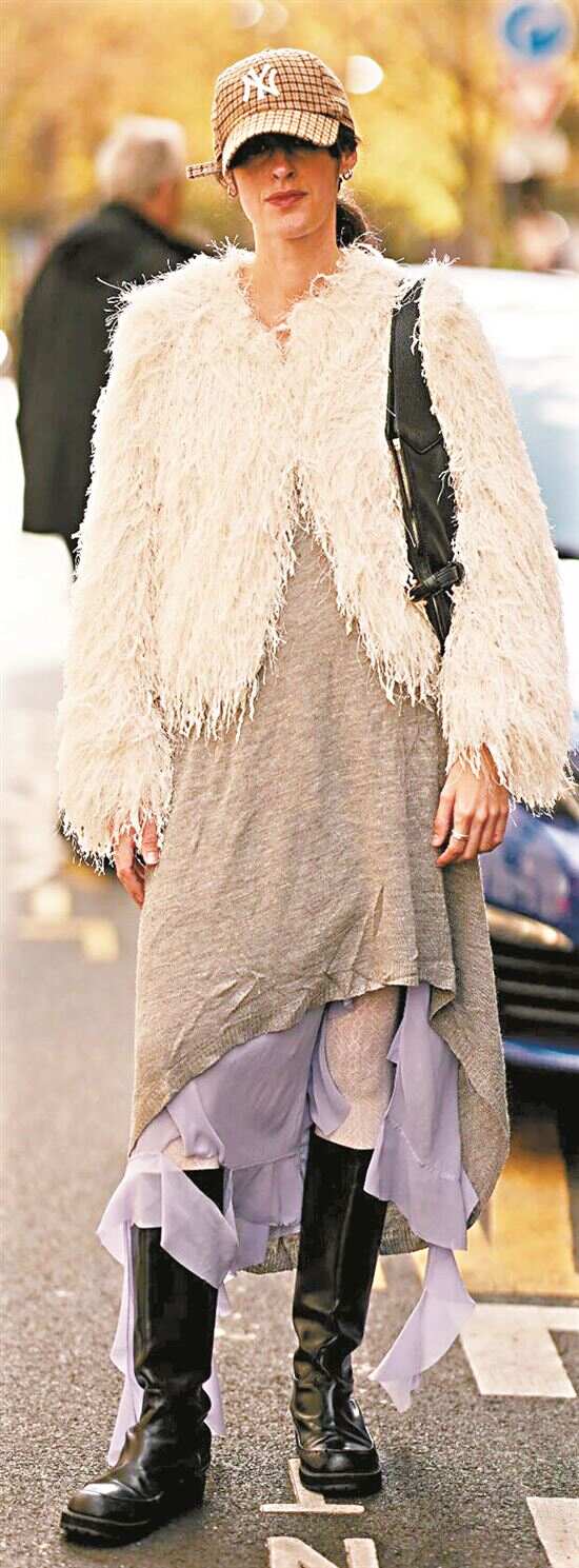 温柔仙女风是水母裙的经典风格,最能凸显飘逸特质,但不代表水母裙只有这一种风格,“甜酷混搭”的玩法可以打造更有趣味的日常装扮,如深色系水母裙搭皮衣、牛仔外套、马丁靴等,柔美与硬朗形成强烈对比,既灵动又酷飒。波西米亚风水母裙也十分受欢迎,钩针编织拼接、开放式织法等手工感细节搭民族风配饰,度假造型更有氛围感且呼应波西米亚风回潮趋势。