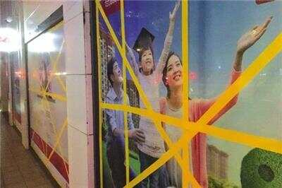 ■“山竹”将在广东登陆,广州一家商场昨天对玻璃幕墙进行了加固。 新快报记者 宁彪/摄 |