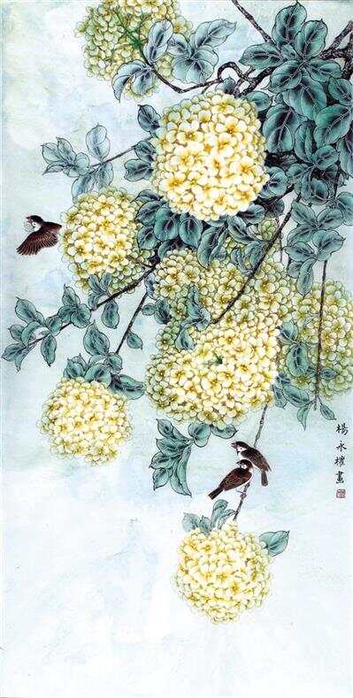 ■收藏周刊记者 梁志钦 三代人的书画作品: 一场艺术与传承的展现 本次“师生画展”,分别展出吴云峰、任斌强、杨永权及其所任教的广州书画专修学院学生包括符琳、杨丹、高云、谢雯、雷秋红、白蔚明、史京红、聂金平、袁银辉、林江萍、谢恒冰、陈丽娟、邓颖仪、杨嘉维、霍应豪、张金成、何伟东等三代人的书画作品,是一场艺术与传承的展现。画展作品以花鸟画为主,表达师生三代人对中国传统绘画作品的追求,从中感受到三代作者的内在修养和才情,感受到因艺术结缘的师生情结,也展现了师生三代对中国画的热爱和传承,对艺术的不懈探索与追求。 本次展览以广州羊城书法研究会名誉会长、羊城书画艺术学校首任校长连登先生题的“一脉相承”为题,强调了多年来师生的传承关系,对于这一点,任斌强更在一幅他们师生合作的作品上赋诗一首:“文史羊城专修院,辛勤几代感师恩,清泉一脉春风雨,天祝国花开满园。” 除了代际之间反映了“一脉相承”之外,任斌强介绍,教学上的方式方法上也一脉相承,“‘有教无类,因材施教’是我们最显著的教学特点”。 任斌强“较真的态度在艺术界越来越稀缺了” 上世纪80年代初,广州羊城书法研究会创办了羊城书画艺术学校,学校开设有书法、国画、中文等专业,由会内外书画、文学名家任教。在普及和推动广州地区书画艺术的发展,培养书画人才等方面起到了促进作用。吴云峰先生和任斌强先生分别担任花鸟班的老师,传授写意与工笔技法,而杨永权先生是花鸟班的学生。 30多年过去,而今吴云峰和任斌强已是当今岭南画坛的名家,杨永权则继承了老师们教书育人的传统,任教于广州书画专修学院,开设工笔花鸟研修班,继续担当艺术传承、艺术修身、艺术圆梦的责任。广州书画专修学院的学生们认真学习老师们认真严谨的教学态度,努力钻研中国画艺术,感受到艺术上的滋润。 2006年,“吴云峰、杨永权新作展”之后,杨永权一直认为师生联展是一次很好的教学相长的实践,甚至从此,他萌生了举办多个师生不同代际展览的想法,2012年,“逸笔生化——任斌强、杨永权师生作品展”成功举办后,更加强了他要举办多代际师生展的念头,这一次在广州文化公园展览厅展出的“一脉相承——吴云峰、任斌强、杨永权三代师生展”甚至被杨永权形容为“完成了12年的心愿”。他说:“2006年开始,我就一直想着希望能够把我与老师、以及学生的作品,一同展出,呈现三代人的艺术面貌,直到这一次,终于实现了。” 谈及老师的影响,杨永权非常扼要地概括任斌强在教学中的身体力行:“任老师对我影响最大的是他做任何事都秉持认真的态度,这种‘较真’的态度在艺术界越来越稀缺了。” 人物介绍 吴云峰 1944年生,1965年毕业于广州文史夜学院中国文学艺术系国画专业,曾任广州市东山区文联副主席、广州市美术家协会副主席、羊城书画艺术学校国画系主任,中国书画函授大学广州分校国画系主任。现为广州市文史研究馆馆员。 任斌强 1959年出生于广州,号“常安居士”,师从连登老师学习书画四十多年,1976年在广州彩瓷织金工艺厂从事彩瓷工艺美术设计,1986年至今创办艺苑彩瓷玻璃工作室。1985年在羊城书画艺术学校任教,从事教学任务十多年,后任羊城书画艺术学校副校长,1987年受聘为中国书画函授大学广州分校国画系教师,并评为优秀教师。现为广州羊城书法研究会副会长、广州市书法家协会常务理事兼副秘书长、广东省书法家协会会员、广州市美术家协会会员。 杨永权 广东省美术家协会会员、广州市美术家协会常务理事、广州羊城书法研究会副会长、广州书画专修学院副教授。 ■杨永权 绣球 ■高云 傲立群芳