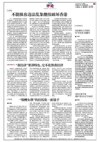 不能纵容违法乱象继续破坏香港