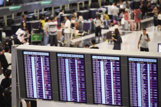 ■8月13日,香港国际机场大屏显示的航班状态。 新华社发 |