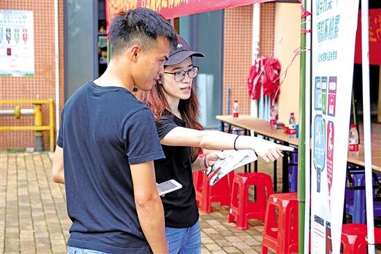 白云湖街相关负责人介绍,按照《白云区生活垃圾分类工作方案》,白云区今年将在全区推进生活垃圾强制分类制度,覆盖村(居)、机团单位、物业居住小区、农贸市场等。“垃圾分类要怎么分,很多人了解得并不是很透彻,所以我们组织‘云湖红棉侠’到社区进行普及。” 活动现场,“云湖红棉侠”在南悦社区人流量集中区域,竖起有垃圾分类详细指南的易拉宝,并派发印有垃圾分类知识的扇子等宣传资料,“一对一”向居民介绍垃圾分类知识。一位“云湖红棉侠”志愿者告诉记者,他们的目的不是发出了多少宣传资料,而是争取让每一个拿到资料的人,都能对垃圾分类有初步认识。 “云湖红棉侠”还可以在“红棉侠盟”APP上认领“侠客令”任务,打卡行走巡防,积累个人积分并捐赠到指定垃圾分类公益项目。当“云湖红棉侠”捐赠积分达一定数目后,“红棉侠盟”APP平台将在南悦花苑认捐垃圾分类箱。