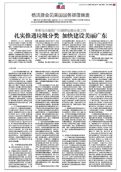 新快报讯 8月13日,省委书记李希、省长马兴瑞到广州,就深入学习贯彻习近平总书记对垃圾分类工作重要指示精神,扎实做好我省城乡生活垃圾分类工作进行调研。