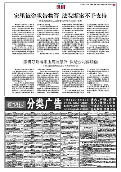 新快报讯 记者何生廷 通讯员宁宇 陈雅敏报道 被虫子叮咬致损,是否属于保险中的“意外伤害”呢?8月14日,新快报记者从广州市花都区人民法院获悉,花都区法院近