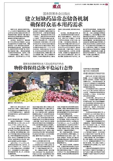 建立短缺药品常态储备机制 确保群众基本用药需求