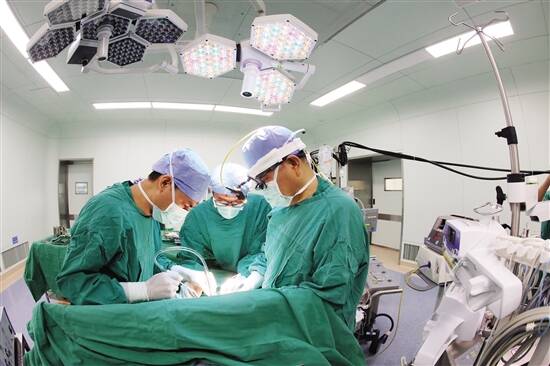 ■在陈绍常慈善基金会“救心行动”的资助下,广东省中医院珠海医院医生正在为怒江的先心病患儿手术。 |