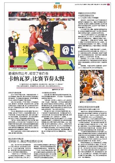 此役,恒大阵中的巴西外援塔利斯卡(右图)打满全场,这也是他复出后的第一次,不过从比赛中来看,他与艾克森、保利尼奥之间并没有形成很好的连线,三人也未形成太多精彩的配合。