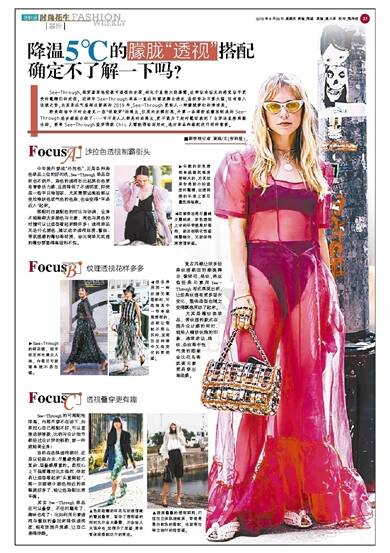 See-Through,指穿着质地轻盈可透视的衣服,相比于直接大胆暴露,这种似有似无的感觉似乎更受时髦精们的欢迎。近两年See-Throug