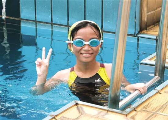 据悉,体育欢乐梦项目是广东公益恤孤助学会与卓逸体育等单位共同发起的一项公益慈善活动。2015年起,广东公益恤孤助学会在河源市、信宜市开展体育欢乐梦项目,陆续在多所学校开展体育支教活动。2015年-2017年暑假期间,该会在广州和信宜共举办三届的体育欢乐梦夏令营活动,对学生开展乒乓球、篮球、足球等项目的强化训练。同时在第三届体育欢乐梦夏令营还推出了农村水安全推广活动,防止溺水事故发生。 8月19日-25日,从夏令营的选拔中脱颖而出的9名同学来到广州华南师范大学(石牌校区)进行为期七天的“小飞鱼计划训练”。这9名学生从农村的山涧溪流游进标准泳池,将来还会机会到大海畅游。活动让偏远山区的农村儿童,透过一步步的努力与奋斗,实现他们海上畅游的梦想。 金英是这“9条小飞鱼”中的一员,她的父母都患有精神病。母亲在生下金英后便离家出走不知所终,后来父亲又为金英找了一个智障的继母,继母又生育了两个智障的弟妹。父亲于2012年自杀身亡时,金英正要升读小学二年级,毫无经济来源的家庭没有办法承担她的学杂费。为了养活继母和弟妹,金英辍学在家,带着他们跑上山去采集八角来糊口,承担着养起这个破败家庭的重任。 幸运的是,金英获得公益机构的资助,为她争取到孤儿生活保障,又把继母送到了精神病院治疗,将其弟弟送去了康复学校读书。如今金英已经在读初三,原来沉默寡言的她逐渐开朗,因成绩优异成为了班干部。她被评为“信宜市最美孝心青少年”,还多次作为志愿者参加音乐会的工作。现在金英正苦练游泳技术,希望能成为一条小飞鱼,从农村游向大海,实现她所追逐的梦想。