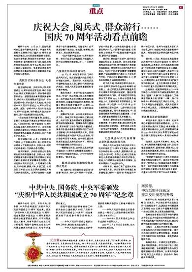 庆祝大会、阅兵式、群众游行…… 国庆70周年活动看点前瞻