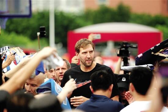 ■昨日,德国球星诺维茨基现身天河体育中心,受到众多球迷的追捧。 新快报记者 孙毅 实习生 石娟/摄 |