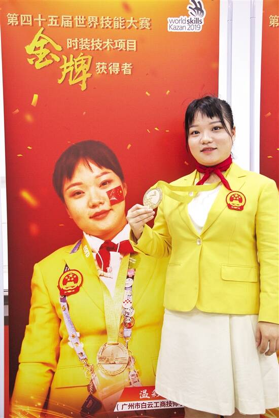 ■温彩云获得时装技术项目金牌。新快报记者 李小萌/摄 |