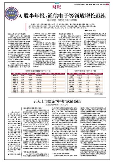 A股半年报:通信电子等领域增长迅速