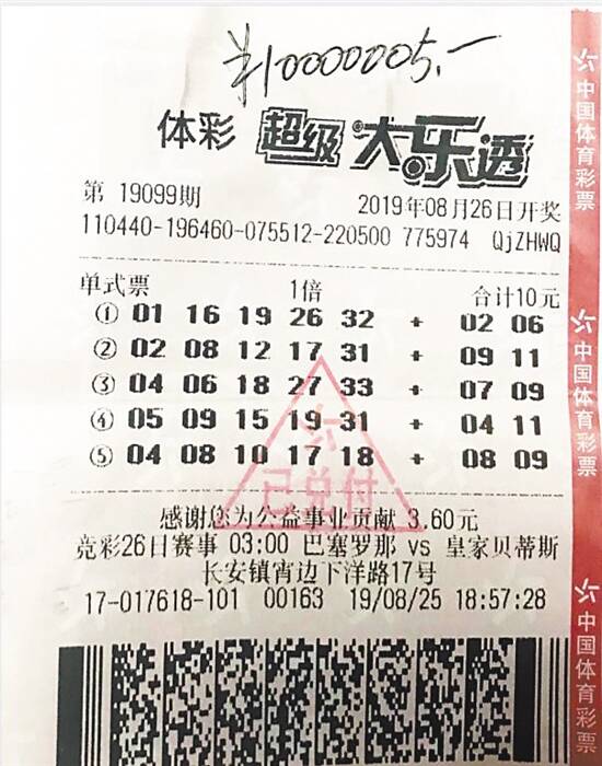 9注头奖3注追加 大乐透第19103期:前区“05、12、22、27、32”;后区“04、07”。前区号码大小比3:2,奇偶比2:3,“05”连续4期开出,同时开出一组同尾号“12、22、32”;后区开出一小一大的偶奇组合。 本期全国开出9注一等奖。其中3注为1800万元(含800万元追加奖金)追加投注一等奖,出自北京、湖南和广东;6注为1000万元基本投注一等奖,分落江苏、山东、湖北、广西、贵州和新疆。 广州小复式建功 数据显示,北京的1800万元出自朝阳,中奖彩票是一张“14+2”追加复式票,投注金额6006元,单票中奖金额1822万元。 广东的1800万元出自广州,中奖彩票是一张“6+3”追加复式票,投注金额54元,单票中奖金额1843万元。 湖南的1800万元出自长沙,中奖彩票是一张15元5注追加单式票。 江苏的1000万元出自南通,中奖彩票是一张“9+2”复式票,投注金额252元,投注注数126注,单票中奖金额1007万元。 山东的1000万元中奖彩票是一张前区10拖、后区1胆2拖的胆拖复式票,投注金额1008元,单票中奖金额1022万元。 湖北的1000万元出自武汉,中奖彩票是一张“15+3”复式票,投注金额18018元,单票中奖金额1055万元。 广西的1000万元出自南宁,中奖彩票是一张“7+2”复式票,投注金额42元,单票中奖金额1003万元。 贵州的1000万元出自铜仁,中奖彩票是一张前区4胆17拖、后区3拖的胆拖复式票,投注金额102元,单票中奖金额1028万元。 新疆的1000万元出自昌吉州,中奖彩票是一张10元5注单式票。 对比可见,由于采用了追加投注,来自北京、湖南和广东的幸运儿在一等奖方面多拿了80%奖金,使得单注一等奖奖金达到了1800万元。 奖池尚余28.66亿 二等奖中出238注,单注奖金11.58万元。其中63注为追加投注,每注多得奖金9.26万元。追加后,二等奖单注总奖金为20.84万元。 当期是新规则上市后的第85期开奖,以2.82亿元的全国发行量,为社会筹集彩票公益金1.01亿元。开奖结束后,奖池尚余28.66亿元滚存至9月7日(周六)开奖的第19104期。