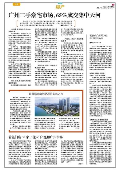 [近几个月,广州市中心二手豪宅市场关注度再度回升,尤其是一手豪宅相对较为缺货的天河区。8月广州总价超千万的二手豪宅成交当中,多达65%的成交落在天河区,其中,交投比较旺的区域有珠江新城、天河公园等