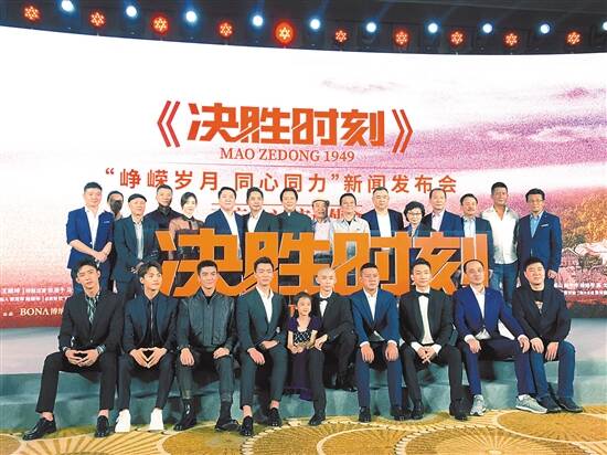 《决胜时刻》带领观众重回中华人民共和国成立前夕,中共中央在香山度过的那段不寻常岁月,艺术再现了党中央在香山运筹帷幄、共商大计、筹备建立新中国的历史,弘扬了共和国缔造者们鞠躬尽瘁的大无畏精神,回溯了中华人民共和国成立的初心和使命。影片最后,开国大典的镜头采用了修复后的历史视频素材,第一次在中国观众面前真实再现了1949年彩色的天安门城楼。 《建国大业》中饰演毛泽东、朱德、周恩来、刘少奇、任弼时的“原班人马”在《决胜时刻》中齐齐回归。作为毛泽东的特型演员,唐国强老师已在许多经典作品中扮演毛主席一角,现场他表示,这一次在造型上、氛围上、后期制作上都能给人震撼的感觉,“我个人感觉这部电影跟《建国大业》相比又进了一步,在导演、剪辑、画面共同的努力之下,对角色的感觉会更加强烈,这次《决胜时刻》也让我自己更有自信”。 除了饰演领袖人物的特型表演艺术家,黄景瑜、王丽坤、马天宇、杜江等年轻演员齐聚,老中青三代演员为电影倾尽全力。《决胜时刻》将于9月20日起公映。