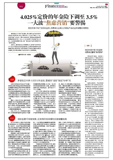 实际上,银保监会此次调整部分人身险产品利率是为了应对可能存在的利差损风险,发挥风险保障和长期储蓄功能,预定利率下调对保险公司准备金提取有现实的影响,但对现有销售产品并没有什么实质影响。 ■新快报记者 刘威魁 现象 多家险企叫停4.025%年金险,营销员“造势”掀起“炒停”风 近期,银保监会印发《关于完善人身保险业责任准备金评估利率形成机制及调整责任准备金评估利率有关事项的通知》(简称“通知”),对2013年8月5日及以后签发的普通型养老年金或10年以上的普通型长期年金,将责任准备金评估利率上限由年复利4.025%和预定利率的小者调整为年复利3.5%和预定利率的小者。 事实上,早在今年年初,就有消息称监管部门已不予备案预定利率4.025%的养老年金险产品。新快报记者留意到,已有不少保险公司也提早做准备,预定利率3.5%-4.025%的热门年金险已开始进入停售或限额销售阶段。 比如,今年6月,人保寿险发布通知称“人保寿险惠民福寿年金保险”产品新单规模保费达到限额3亿元后,总公司将关停系统保单的录入功能。新快报记者拨打该公司客服证实,该产品已于7月19日停售。 此外,天安人寿的《天安人寿传家福(尊享)养老年金保险》《天安人寿欢乐颂年金保险》已在2019年8月9日23:30停止新单受理。华夏人寿也于日前发布公告称,自9月30日24时起,停止录入“华夏福临门(盛世版,A款)年金保险”“华夏福临门(盛世版,B款)年金保险”“华夏金管家终身寿险(万能型、钻石版)”,同时对9月承保的盛世福临门产品实施限额销售,全国限额为承保标保20亿元,满额后停止录入。 与此同时,一大波保险公司“高收益产品即将停售”的“炒停”信息也随之而来。最近,不少保险营销人员通过电话、短信、微信朋友圈等方式对消费者进行“焦虑营销”,发布“福利倒计时”“薅最后的羊毛”“这是最后的高息年金险了”等销售话术,引诱保险投资者赶在产品停售或限售前争买最后的“高收益”。 “实际上,银保监会只是叫停新的年金险产品4.025%预定利率备案,对于已经上市的预定利率4.025%年金险产品,并没有被要求限期停售。”新快报记者向多名业内人士求证获悉,预定利率下调后,只会对保险公司准备金提取有现实的影响,对现有销售的产品并没有什么实质影响,高收益产品的“停售概念”只是部分代理人的“炒停”行为,将来的市场收益如何,谁也无法预知。 析因 保险业要可持续发展,应发挥风险保障和长期储蓄功能 对于此次部分人身险产品利率调整,银保监会认为,未来保险业投资端面临一定压力,为应对可能出现的利差损风险,有必要适当下调现行评估利率。那评估利率与预定利率对于保险公司开发新产品有什么影响呢? 根据规定:如果产品预定利率不高于评估利率的上限(即预定利率 ≤4.025%),只需要备案即可开发新品;如果产品的预定利率高于评估利率的上限(即预定利率 ≥4.025%),就需要银保监批准才可以开发新品,但基本上不会通过。这意味着一段时间内,银保监会将正式不再核批4.025%定价的年金险,市场上也不会再有新的4.025%定价的年金险出现。 “4.025%的预定利率是目前国内备案类保险年金产品预定利率的上限,考虑到当前情况,加之处于利率下行周期,这类产品对消费者来说还是很有吸引力的。”一位不愿具名的精算师告诉新快报记者,高预定利率产品卖点足,能较好地拉动险企的保费增速,有助于险企做大保费规模。 申万宏源研报显示,2019年“开门红”期间,国内不少寿险公司均推出了预定利率达4.025%的储蓄类产品。例如,中国人寿的主打产品“鑫享金生”,定价利率均为4.025%。数据显示,该款产品第一阶段预售的新单接近350亿元,十分可观。新华保险推出“惠添富”年金产品,卖点也在于4.025%高预定利率。 “较高的定价利率是把双刃剑,虽然短期能为险企带来保费,但从长期看,也对险企的投资能力提出了很高的要求,保险公司可能面临利差损的风险,目前的环境下,再用4.025%的利率来做准备金的评估利率,潜在风险较大。”上述精算师认为,此次监管政策像是对定价利率的一个指导,在利率水平上,监管传递的意思是认为,3.5%是比较合适的评估利率水平,体现了监管对未来利率趋势和风险的判断,在提示行业关注长期利率下行的风险。 “在转型与竞争的双重压力之下,部分公司通过提高预定利率降低产品定价的长期年金产品获取保费收入,在长期利率下行背景下有可能带来利差损风险。而且,由于长期保障和养老年金产品具有复杂性和长期性,高承诺利率变得更加隐蔽,进一步掩盖了将来可能出现的利差损和风险。”国务院发展研究中心金融研究所保险研究室副主任朱俊生分析认为,降低责任准备金评估利率,可以增加已有存量业务的责任准备金,应对可能存在的利差损风险;行业要基于长期可持续发展的理念,继续加大转型力度,发挥风险保障和长期储蓄功能。 提醒 预定利率不等于收益率 消费者应警惕“焦虑营销” 预定利率下调后,对投保人的影响会有多大?“预定利率可以看作是保险公司对客户保费的投资收益补偿,因此保险公司在定价时使用的预定利率越高,相当于公司在这张保单上补贴的投资成本越高,折现成现值的保费就越便宜。”某大型险企代理人告诉新快报记者,“预定利率”主要用于保险产品的定价上,保险监管部门通常会对预