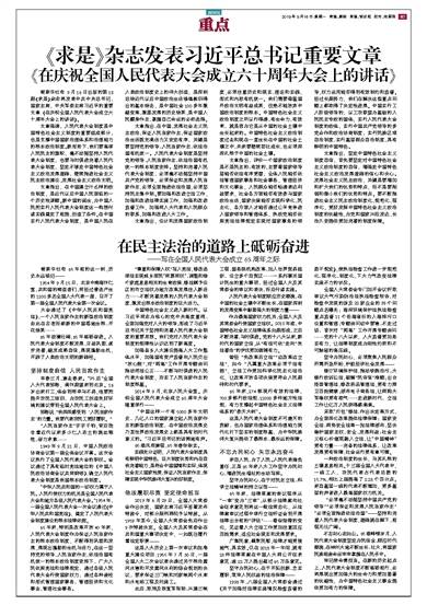 《求是》杂志发表习近平总书记重要文章 《在庆祝全国人民代表大会成立六十周年大会上的讲话》