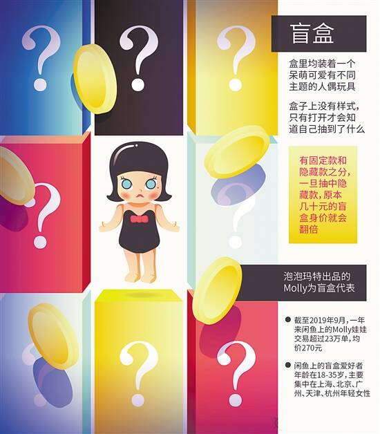 有网友表示入坑一个月,花了三千多;有来自北京的夫妇,在盲盒潮玩上4个月花了 20 万;还有一位60岁的玩家,一年花了70多万购买盲盒;当然,还有上海玩家靠转卖盲盒一年就赚10万元之多。 到底盲盒是啥?为什么会如此火爆?炒盲盒真能赚钱吗? ■新快报记者 郑志辉 80后扭蛋,90后盲盒 据记者了解,盲盒是一种潮流玩具,里面装的是一款表情呆萌、设计时尚的人偶玩具,但购买时没有人知道里面装的是哪一款,这正好应了《阿甘正传》中的那句名言:“人生就像一盒各式各样的巧克力,你永远不知道下一块将会是什么口味”,“除了人生,盲盒也是这样。” 盲盒的概念并不新鲜,80后童年疯狂收集的小浣熊水浒卡就是盲盒的初代形式。为了一张宋江卡,有熊孩子把一整箱一整箱泡面往家里搬。而现在,为了获得一个稀有的隐藏款盲盒,更多成年人不惜在闲鱼等二手电商渠道上高价收购。 据国泰君安人士分析,盲盒背后的营销逻辑与40年前日本诞生的扭蛋机类似,玩家投入100 日元硬币后就能获得装有玩具的扭蛋,而扭蛋中装着的玩具样式也需要打开扭蛋后才能知晓,这种装置如今仍可在日本药妆店、便利店等处见到。2007年,日本最大玩具制造商万代再次将扭蛋推至消费浪潮之中,针对30岁左右消费人群推出的“机动战士高达”复刻人偶扭蛋,销量达450万。 很多盲盒玩家都像着了魔一样,不惜豪掷千金抽盲盒。有网友表示一旦入坑,便欲罢不能。据报道,一对来自北京的夫妇,在盲盒潮玩上4个月花了20万;另一个日本宅男,家里的盲盒公仔摆满一面墙,平均每个月花费40多万;知乎上还有男士犯愁:月薪7000的月光族,如何让老婆退坑盲盒? 盲盒达人“王没谱”四年前率先在闲鱼建了个Molly交流鱼塘,希望可以和更多的藏友互通有无。王没谱说:“收藏最大的乐趣不光是占有收集,还有通过收藏认识志同道合的朋友,转让过程中聊起来越聊越投缘,这种突然多出一个至交好友的感觉非常奇妙。” 炒盲盒真的能赚钱吗? 要回答这个问题,得先了解盲盒让人欲罢不能的根本原因是什么? 分析认为,第一、盲盒作品是大众易于接受的可爱形象,从来没了解过盲盒的路人看到也会感兴趣,加之各个设计师都有自己的粉丝基础来埋单,受众群体广。第二、盲盒的价格亲民,几十元是绝大多数人都能承受的价格。第三、盲盒有固定款和隐藏款之分,而且有的隐藏款出现的概率极低,隐藏款这个设定很好地抓住了消费者的心理,大家都想试试自己的运气,一旦抽中隐藏款,转手易价能翻上好几十倍。 由于盲盒的大众粉丝基础以及亲民的价格,又有让人欲罢不能的未知性和趣味性,首先获得年轻人群的追捧也就理所当然了。 天猫2019年8月发布的《95后玩家剁手力榜单》显示,95后最“烧钱”的爱好中,潮玩手办排名第一。同时,盲盒收藏成为了硬核玩家数量增长最快的领域。单是在天猫上,就有近20万消费者每年花费2万余元收集盲盒,其中购买力最强的消费者一年购买盲盒甚至耗资百万,其中95后占了大多数。 同时,如今闲鱼上的盲盒交易已经是一个千万级的市场,过去一年闲鱼上有30万盲盒玩家进行交易,每月发布闲置盲盒数量较一年前增长320%。 那么,在盲盒界,谁最有收藏(交易)价值?是新晋网红Molly,还是老牌sonyangle? 从天猫盲盒销售额占比分析来看,具有IP加持的盲盒受欢迎度高,盲盒中大多为成套销售的玩偶手办,可能是动漫、影视作品的周边,也可能是由设计师单独设计出来的角色,比如在盲盒中颇有人气的索尼天使、乐高小人、泡泡玛特等。 在国内,盲盒单价并不高,一般在39-69元之间。对于大部分消费者来说,虽然盲盒入门毫无门槛,而一旦踏入,则很容易陷入不断购买的循环。圈内最疯狂的行为,叫做“端箱”。盲盒的狂热爱好者会一次性花费几千元,成箱往家搬,端箱的终极目的是为了抽到隐藏款。 除了抽到隐藏款带来的心理满足之外,一个隐藏款在闲鱼上被炒到天价也能给玩家带来物质上的“满足”。根据闲鱼官方数据,限定款和隐藏款被炒至上千元并不罕见。 闲鱼上涨价最凶猛的热门盲盒,第一名要数泡泡玛特的潘神圣诞隐藏款,原价59元,现在在闲鱼已经卖到2350元的高价,狂涨39倍。另一款泡泡玛特的Molly胡桃夹子王子隐藏款涨幅也很高,原价59元,现在闲鱼均价1350元,涨幅22倍。另外,labubu的宇航员隐藏款原价699,在闲鱼的价格已经涨到3000元,涨幅3.3倍。