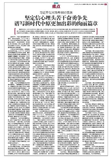 据新华社电 中共中央总书记、国家主席、中央军委主席习近平近日在河南考察时强调,要认真贯彻落实党中央决策部署,坚持稳中求进工作总基调,坚持新发展理念,统筹做好稳增长、促改革、调结构、惠民生