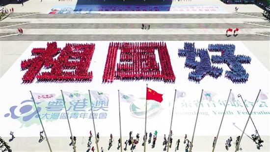 ■新快报记者 黄闻禹 通讯员 岳 青 现场 千人同升一面旗 三地共唱祖国情 昨日上午,白云会议中心西广场充满热烈欢快的气氛,3000名粤港澳青年在广场中央集中、排列,俯视之下,赫然显示出“祖国好”三个大字矩阵,以新颖的方式真情向祖国问好。 11时,伴随着雄壮的国歌,在“中国第一侨校”暨南大学国旗护卫队的护卫下,五星红旗冉冉升起,全场嘉宾和青年齐声高唱国歌。国旗护卫队的队员杨同学来自香港,她说:“希望可以通过自己参加国旗护卫队的经历,向身边的同龄人、香港亲友讲述我眼中的国旗故事。” 庄严的升旗仪式拉开了活动序幕,一首《我和我的祖国》则将活动引向高潮。在歌声中,一面巨型五星红旗缓缓覆盖在人群上,稳稳地滑过方阵。一双双年轻的手支撑着,托举着,传递着对祖国的祝福。大学生志愿者伍晓琳说:“我们奏唱国歌、合唱《我和我的祖国》,在歌声中深深感受到祖国母亲的伟大富强。” 不只是向祖国表白,更要鼓励青年投身大湾区建设。主场活动现场,六名粤港澳优秀青年代表带领全场青年宣读倡议书。他们共同号召青年胸怀祖国,投身大湾区建设,真诚交心交友,维护和平安定,为共同建设美好家园而努力奋斗。他们用最洪亮的声音发出倡议:“让我们共同携手,与大湾区同发展,与祖国共奋进!” 港澳青年说 亲眼见到祖国的富强,祝福祖国更好 “这首歌在我大学一年级的时候就开始唱了,但每一次唱的感觉都不一样,尤其今年是新中国成立70周年,看到全国各地都在用不同形式歌颂祖国,让我对这首歌有了更深的理解和感受。”《我和我的祖国》现场领唱、星海音乐学院副教授冯珊珊说,作为青年人,不但要在学业上努力,事业上拼搏,内心也应深藏一份家国情怀,通过努力和奋斗,让祖国更加繁荣富强。她呼吁,粤港澳大湾区青年要共同联手,让明天更加美好。 香港西贡区青年议员温启明说,这是他参加过的规模最大的一次青年活动,祖国美丽的风景和日新月异的发展让他和他的朋友惊叹。“其实很多情况真的只有亲身来过才能了解,我回去香港后会和同伴分享我的见闻,也会鼓励更多香港青年来到内地亲身了解祖国内地的发展。” 同样来自香港的青年傅晓琳说,这次来到广州参观交流,给她最大的感受是内地的发展很快,变化很大。她说,“粤港澳大湾区给港澳青年搭建起了就业、创业平台,带来了广阔的发展机遇,我鼓励他们多来内地创业发展。” 粤港澳大湾区正在如火如荼地建设中,很多港澳青年也通过大湾区了解祖国的新气象。澳门青年法学会会长曾新智已经来广州创业3年了,现在已经很好地融入到内地的工作生活。他坦言,粤港澳大湾区给港澳青年提供了广阔的发展空间和更多的发展机遇。记者了解到,为了给祖国庆生,早上他特意开车从澳门赶过来参加此次活动。“祝福我们伟大的祖国,希望祖国越来越繁荣富强。”曾新智深情地说。