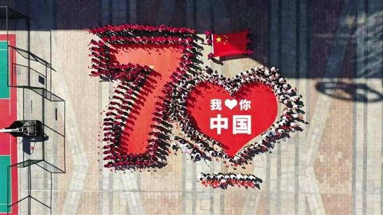 ■150名港澳同胞统一着装分别组成了一个数字7和一个“心形” ,庆祝中华人民共和国成立70周年。 |