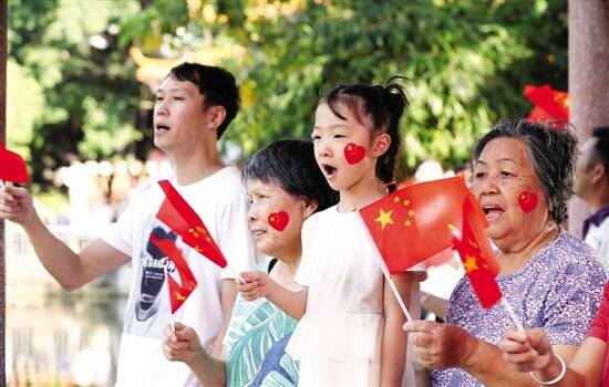9月21日,“十万歌声献祖国 砥砺奋进新时代”大合唱MV港澳同胞专场拍摄活动在长安镇举行,150名港澳同胞与当地市民一起手持国旗,深情唱响《歌唱祖国》,用歌声传递对祖国的爱。连日来,东莞长安“十万歌声献祖国 砥砺奋进新时代”大合唱MV拍摄活动已动用5个摄制组、近40个合唱团体进行拍摄,范围涵盖了工厂园区学校、社区单位和学校团体,全镇参与合唱的人数达10万人。规模最大的单次活动要算9月18日,MV拍摄活动走进广东东莞安力科技园、振安科技园,上万名企业员工手持小国旗,热情高唱《歌唱祖国》,场面异常震撼,其拍摄画面更是迅速刷爆了朋友圈。 据介绍,东莞长安镇港澳同胞人数与当地户籍人口几乎相当,他们在长安镇的发展和建设过程中发挥了重要作用。在中华人民共和国成立70周年即将到来之际,港澳同胞积极参与长安“十万歌声献祖国 砥砺奋进新时代”大合唱MV拍摄,以实际行动表达对祖国母亲的深深祝福。 记者在现场看到,150名港澳同胞统一着装,个个精神抖擞,分别组成了一个数字7和一个“心形” 。他们手持国旗,齐声高喊“我爱你中国”,流露出满满的爱国情怀。 东莞长安“十万歌声献祖国 砥砺奋进新时代”大合唱MV拍摄活动近日还分别走进乌沙社区、霄边社区和上沙社区,数千名居民手持小红旗,秩序井然地聚在一起,用歌声祝福祖国。现场气氛热烈、人们热情高涨,展现了昂扬向上的精神面貌和美丽富裕的乡村新貌。