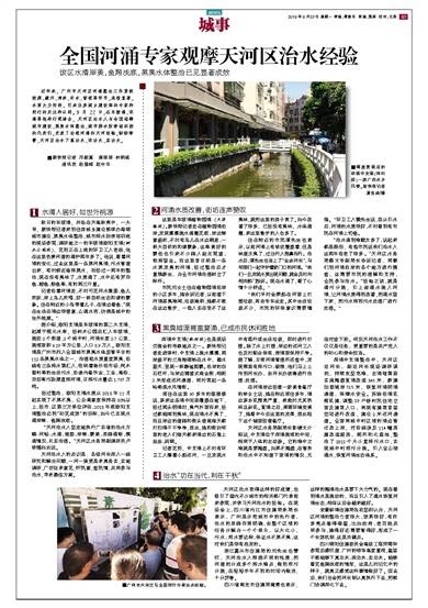 近年来,广州市天河区河涌整治工作紧抓控源、截污、清淤、补水、管理等环节,成效显著,水质大为好转,引来住房城乡建设部的专家和同行的关注和认同。9 月 22 日,在车陂涌