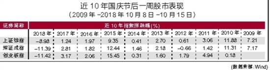 临近国庆长假,近两日,股市多空双方围绕3000点展开了拉锯战。长假休市期间,究竟是持股过节还是持币过节?10月是否能迎来开门红,能否有红包行情?数据显示,过去10年国庆节后上证综指、深圳成指上涨概率均为80%。 ■新快报记者 涂波 10月流动性总量有望上升 昨日,A股一改颓势,三大股指全线飘红,上证指数报收2985点。数字货币、国产芯片、软件等板块强势上涨,有效地带起了市场的赚钱效应。此番上涨,与昨日财政部、央行、统计局等相关领导讲话有着直接的联系。其中,央行行长易纲谈到中国是否降息的问题时表示,中国的货币政策应当保持定力,坚持稳健的取向。中国的经济目前还是在合理区间,物价方面也处于一个比较温和的区间。中国在转型升级中遇到一些结构性的问题,主要是通过供给侧结构性改革来解决,不急于做出比较大的降准或者量化宽松举措。 此外,本月23日央行连续第4个工作日开展逆回购操作。据统计,本月16日以来,央行共开展4200亿元逆回购操作,开展2000亿元MLF操作,降准释放资金约8000亿元。综合考虑,过去一周,央行通过各类流动性工具,释放的流动性约1.42万亿元。在吸收到期央行逆回购和MLF之后,净释放的资金量仍接近9000亿元。以往在实施降准前后,央行一般会通过公开市场操作(OMO)进行资金回笼,以避免降准造成短期流动性过于充裕。这次全面降准后,央行同时通过公开市场操作投放流动性,实属少见。 从以往来看,流动性收紧时期,股债市场往往难有太好表现,仍需防范季末前流动性波动可能造成的估值压力。分析人士指出,从央行近期系列措施来看,10月初流动性趋于回暖是较为确定的,由此可能带来的机会值得关注。因为全面降准释放出了大量长期流动性,而央行公开市场操作发力,9月实现净投放不小。此外,9月是传统财政支出大月,财政库款将形成流动性投放。这意味着,到9月底,金融机构超储规模有望明显高于8月末水平。10月初,随着季末扰动消退,流动性总量上升有望更充分地反映在货币市场资金松紧程度和资金价格走势上。 节后A股上涨概率为80% 东方财富的一项研究报告显示,从2009年至2018年的国庆节前后5个交易日A股主要指数涨跌幅情况来看,节前5个交易日中市场指数涨跌互现,规律不甚明显,但是节后则大概率出现上涨。 新快报记者统计WIND数据了解到,近10年来,国庆节后一周(2009年-2018年的10月8日-10月15日),上证综指涨幅最大出现在2010年,涨幅高达11.88%。深证成指上涨最多的一次是在2015年,涨幅高达12.44%,而这一年创业板指节后涨幅更是高达15.45%。而A股三大指数近10年来跌幅“之最”均落在2018年,平均跌幅超8%。过去10年,上证综指、深圳成指上涨概率均为80%,节后指数超过5%的暴涨暴跌也仅有两次,平均涨幅约2.5%,中小板指和创业板指则只有一年下跌,平均涨幅为2%。 面对当前的行情,持股还是持币过节?光大证券研报显示,截至9月20日,股票型基金平均仓位为84.51%,相比上周下滑了1.37个百分点;偏股混合型基金平均仓位为76.58%,相比上周下滑了2.21个百分点。当然,也有前期减仓的机构考虑在节前将仓位适度加回来。 值得注意的是,本周国际三大指数公司标普道琼斯指数、富时罗素和明晟指数对中国A股抛出了“橄榄枝”,有望吸引超千亿元人民币外资流入,即使是被动配置的资金也将高达460亿元人民币。 展望四季度,海通证券认为,借鉴历史,牛市第二波上涨即波浪理论中的三浪,初期会反复盘整,类似跑步加速前在起点附近折返跑热身。同时,上证综指2733点附近可能是这轮牛市第二波上涨的起点,因为还要确认基本面和政策面向好,初期仍会有波折。目前是布局期,历史上三浪加速往往靠银行带动,岁末年初是个窗口期,中期科技和券商更优。