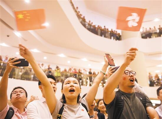 9月24日,一场爱国快闪活动在香港太古广场举行。大批香港市民高唱爱国歌曲,庆祝中华人民共和国成立70周年。