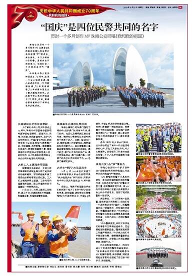珠海公安历时一个多月创作MV主题曲《我和我的祖国》,用这种方式向祖国“声”情表白。来自拱北、斗门分局的4位民警,虽然来自不同的部门,但他们有一个共同的名字叫“国庆”。