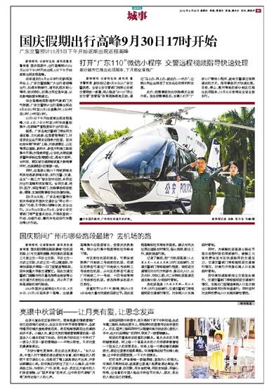新快报讯 记者何生廷 通讯员粤交警报道 国庆假期中,出行高峰预计从9月30日下午5时开始出现,5日下午开始逐渐出现返程高峰。